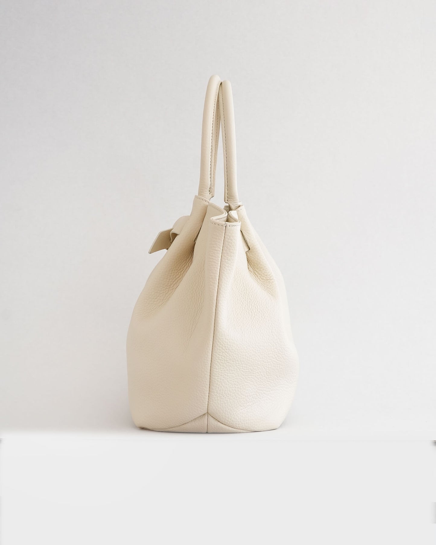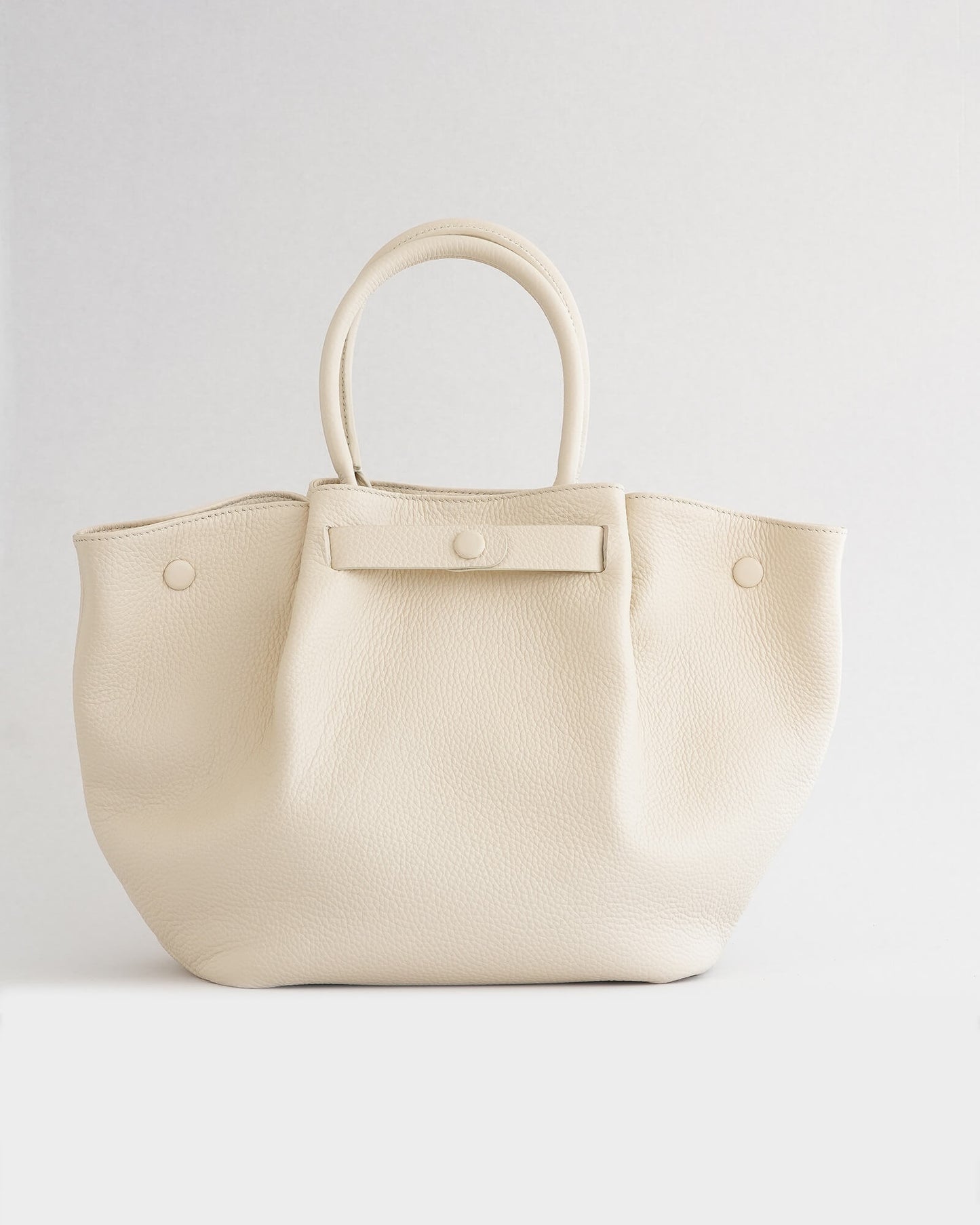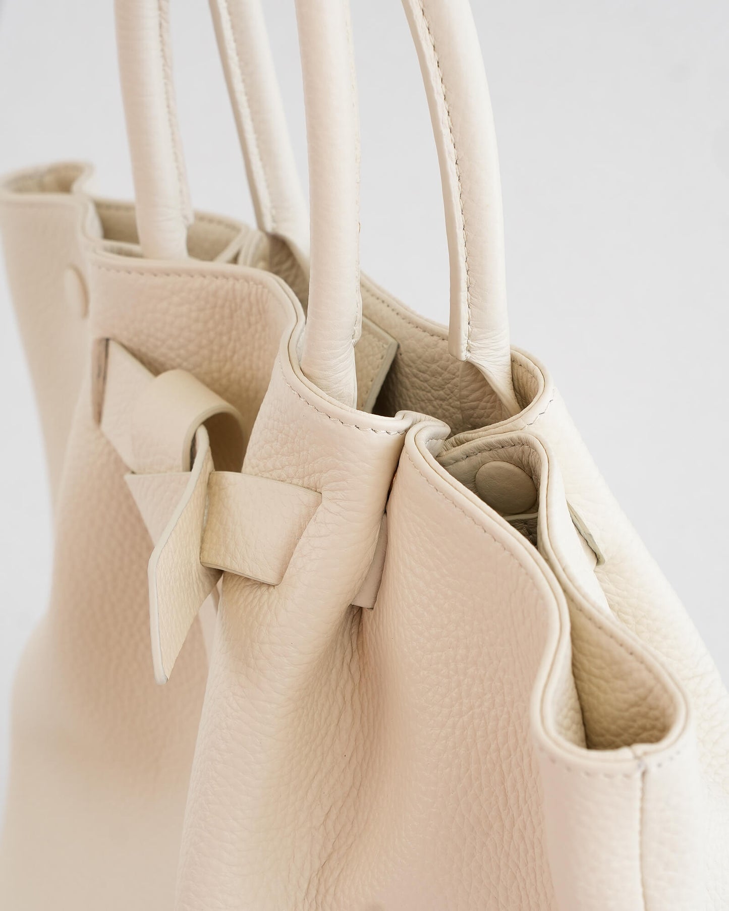 Scallop shells are engineered through layered ridges — structured yet organic. The Pecten Tote translates this natural form into leather through subtle front pleating and sculptural volume. The folds create dimension without rigidity, allowing the bag to hold its shape while moving with the body.