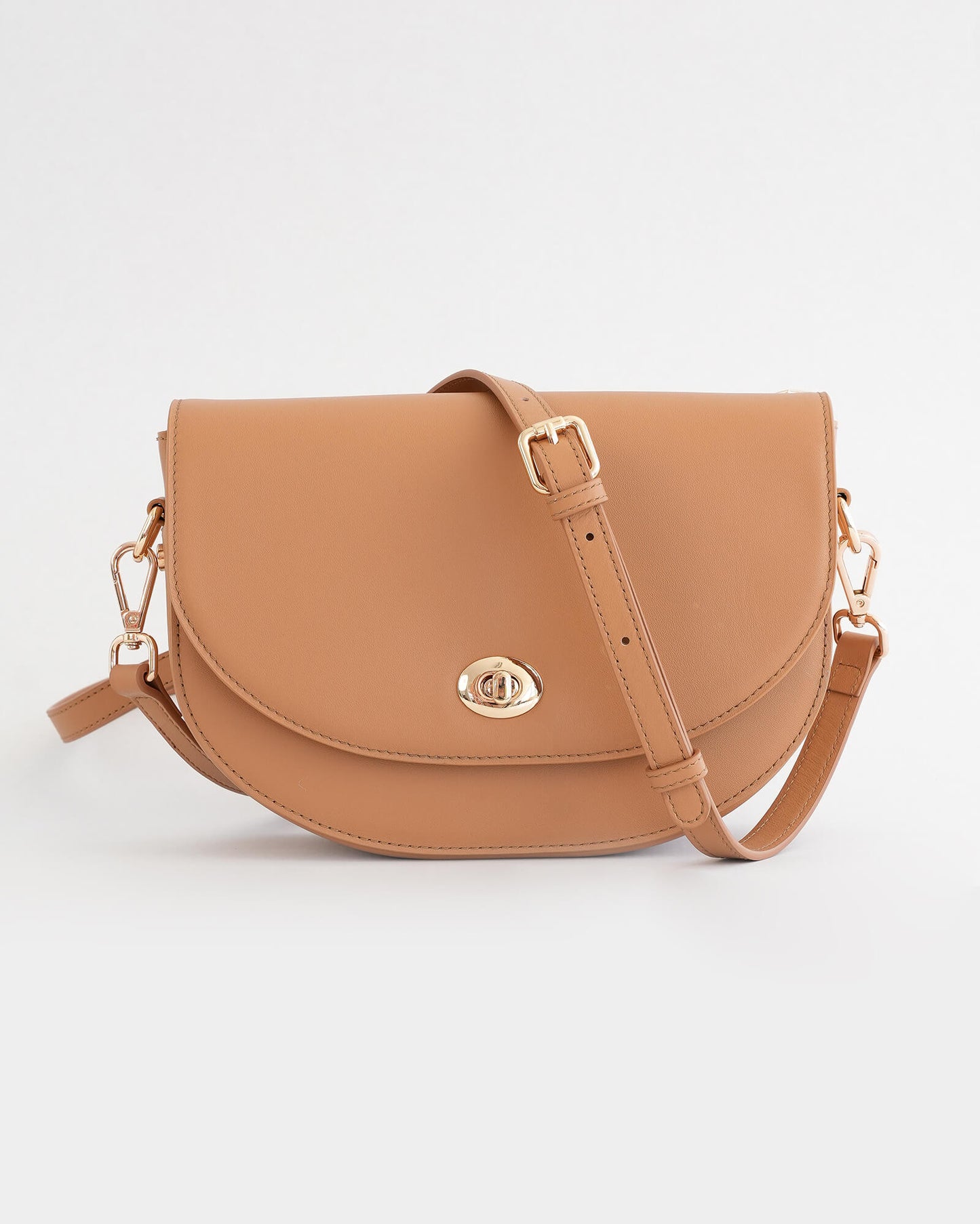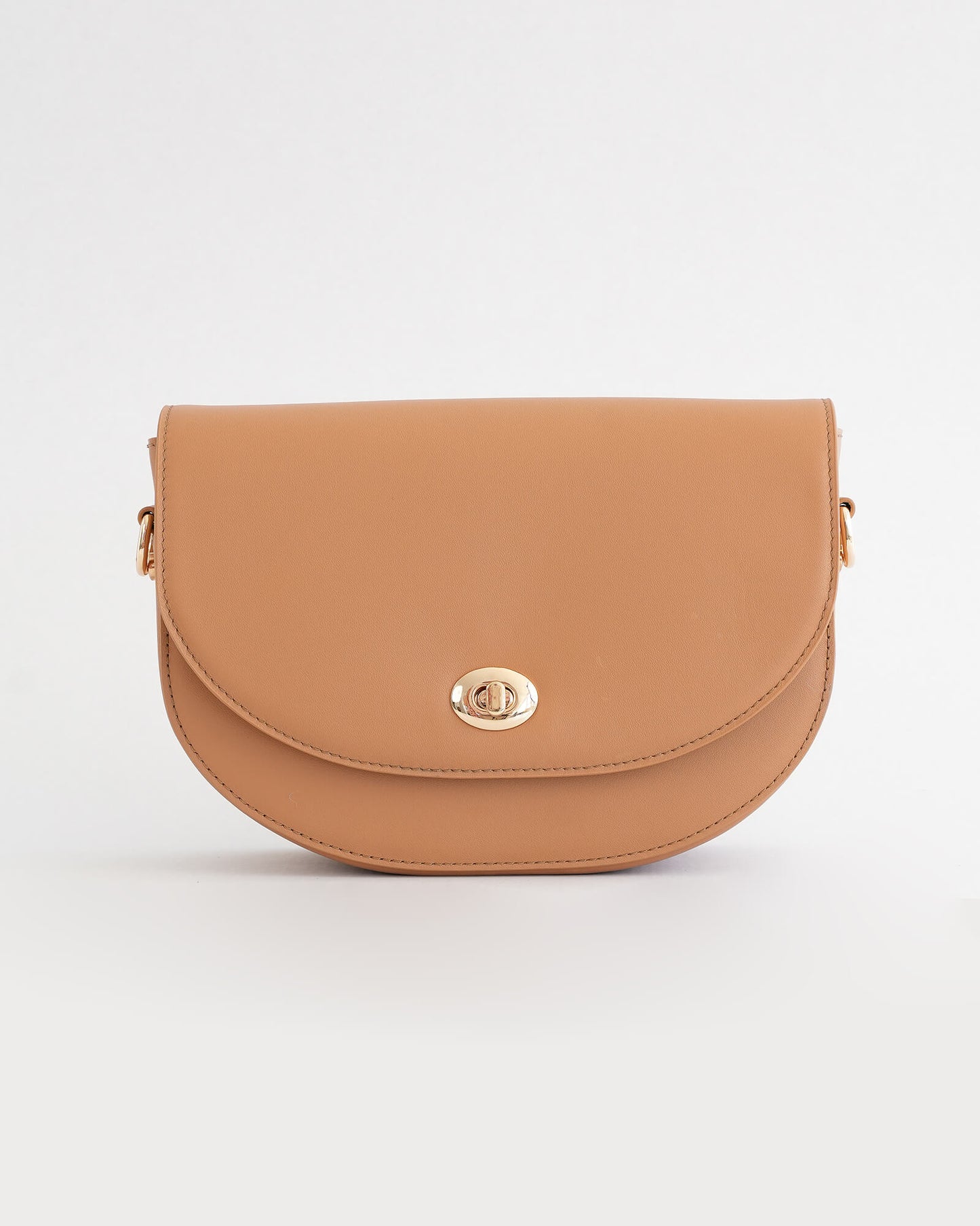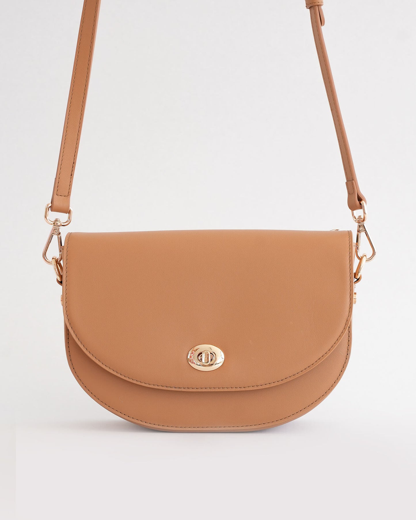 Compact yet considered, this medium-sized leather sling bag is designed to carry daily essentials with ease. The curved flap closes securely with refined gold hardware.
