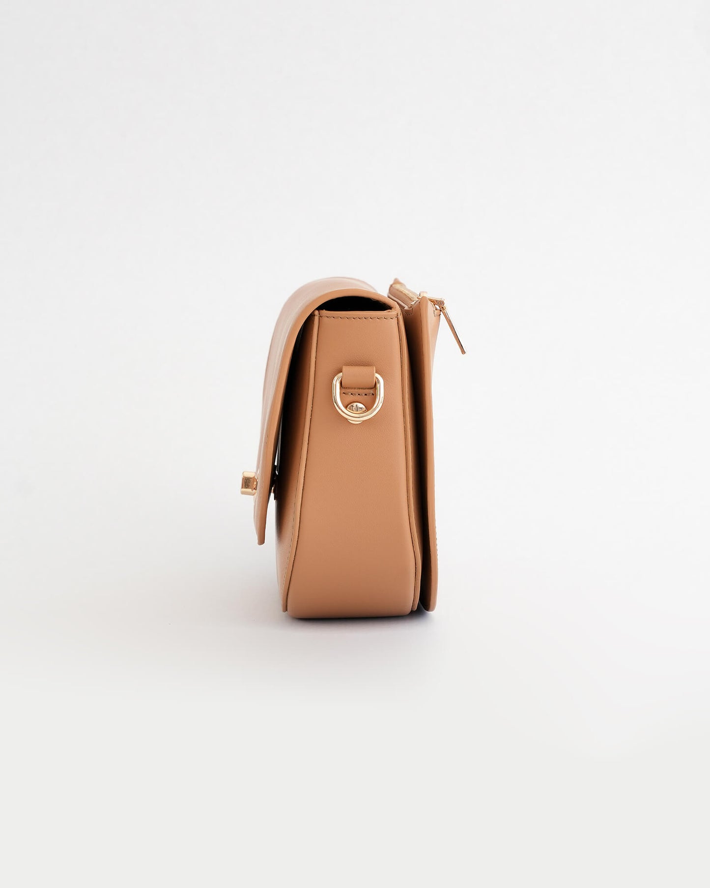 The design began as an exploration of the lunar phase — specifically the half-moon. The uninterrupted arc of the flap mirrors the rounded base, creating a continuous, disciplined curve.