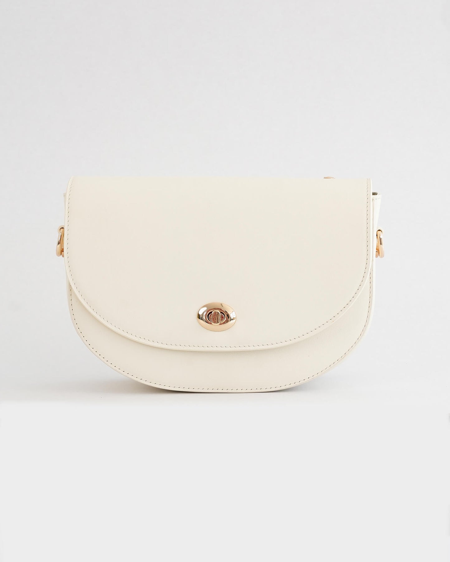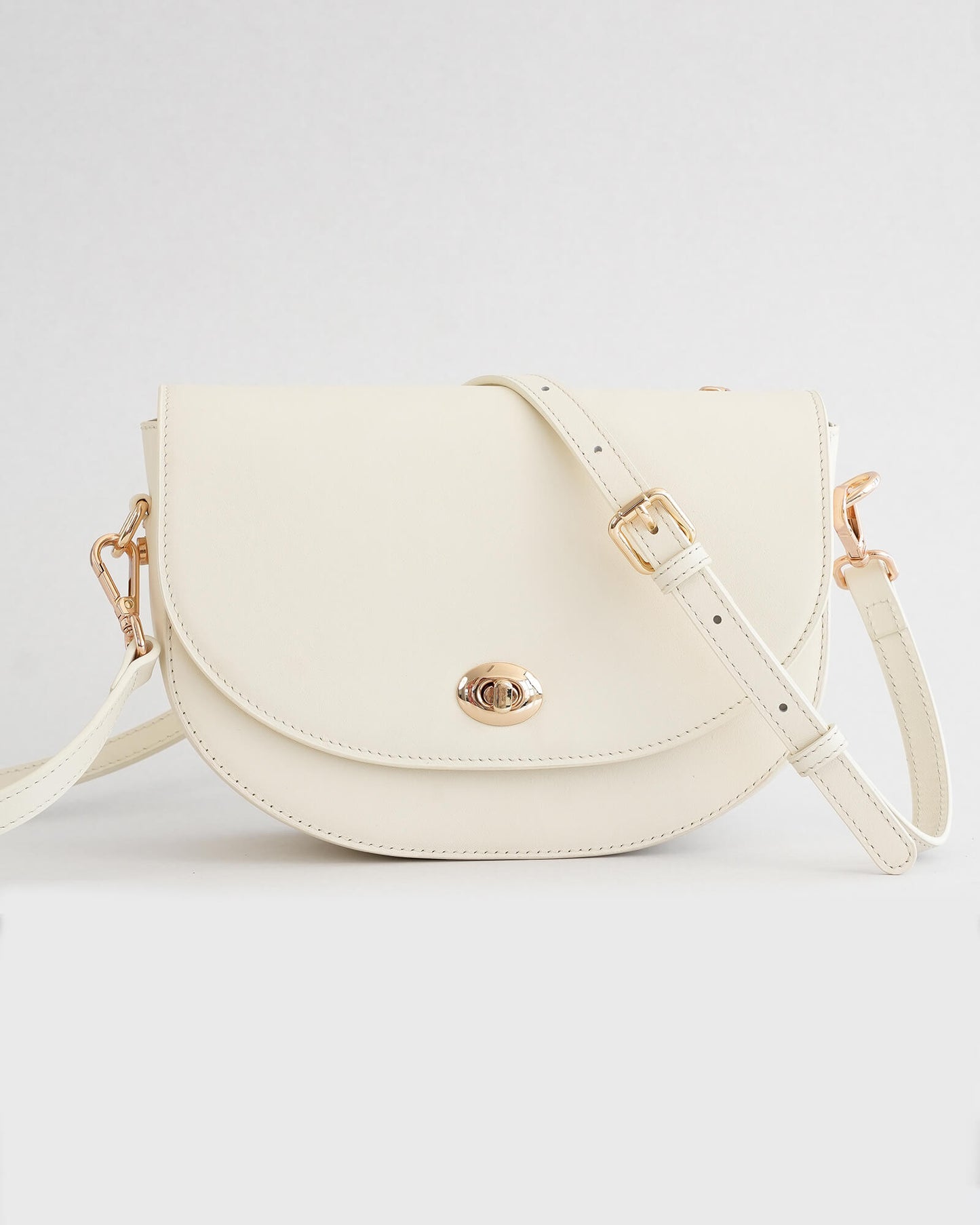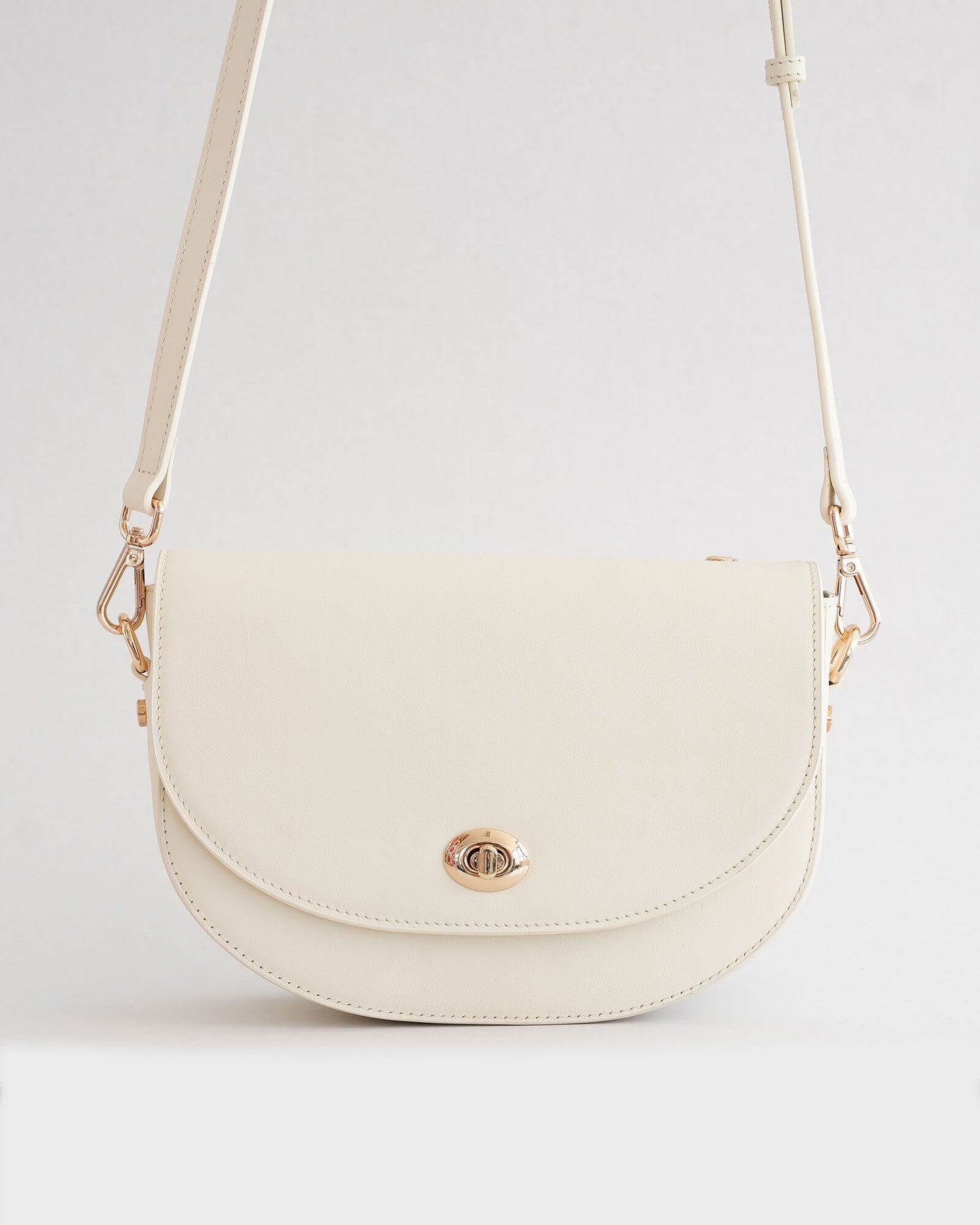 Compact yet considered, this medium-sized leather sling bag is designed to carry daily essentials with ease. The curved flap closes securely with refined gold hardware.