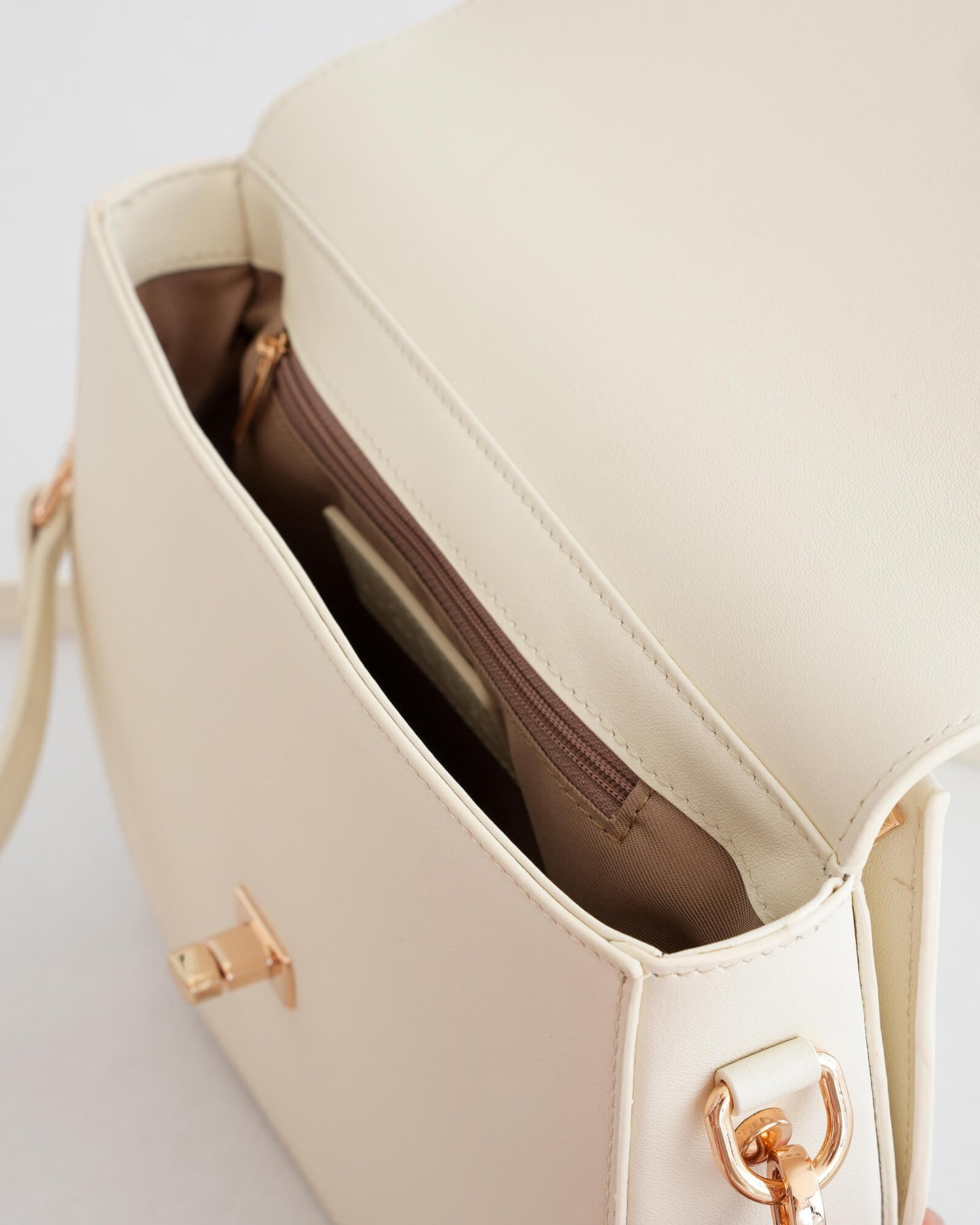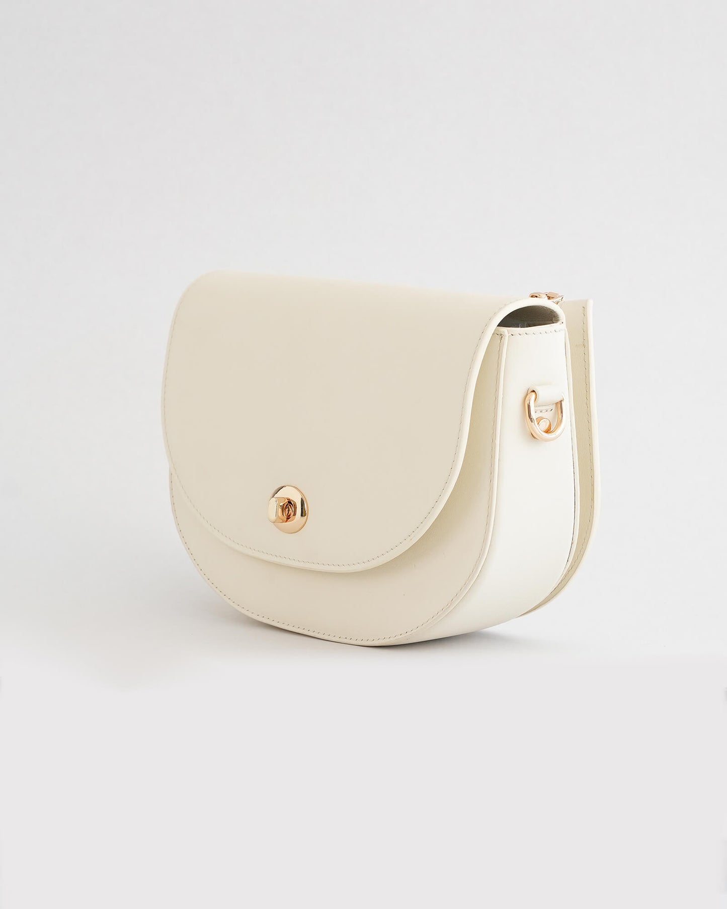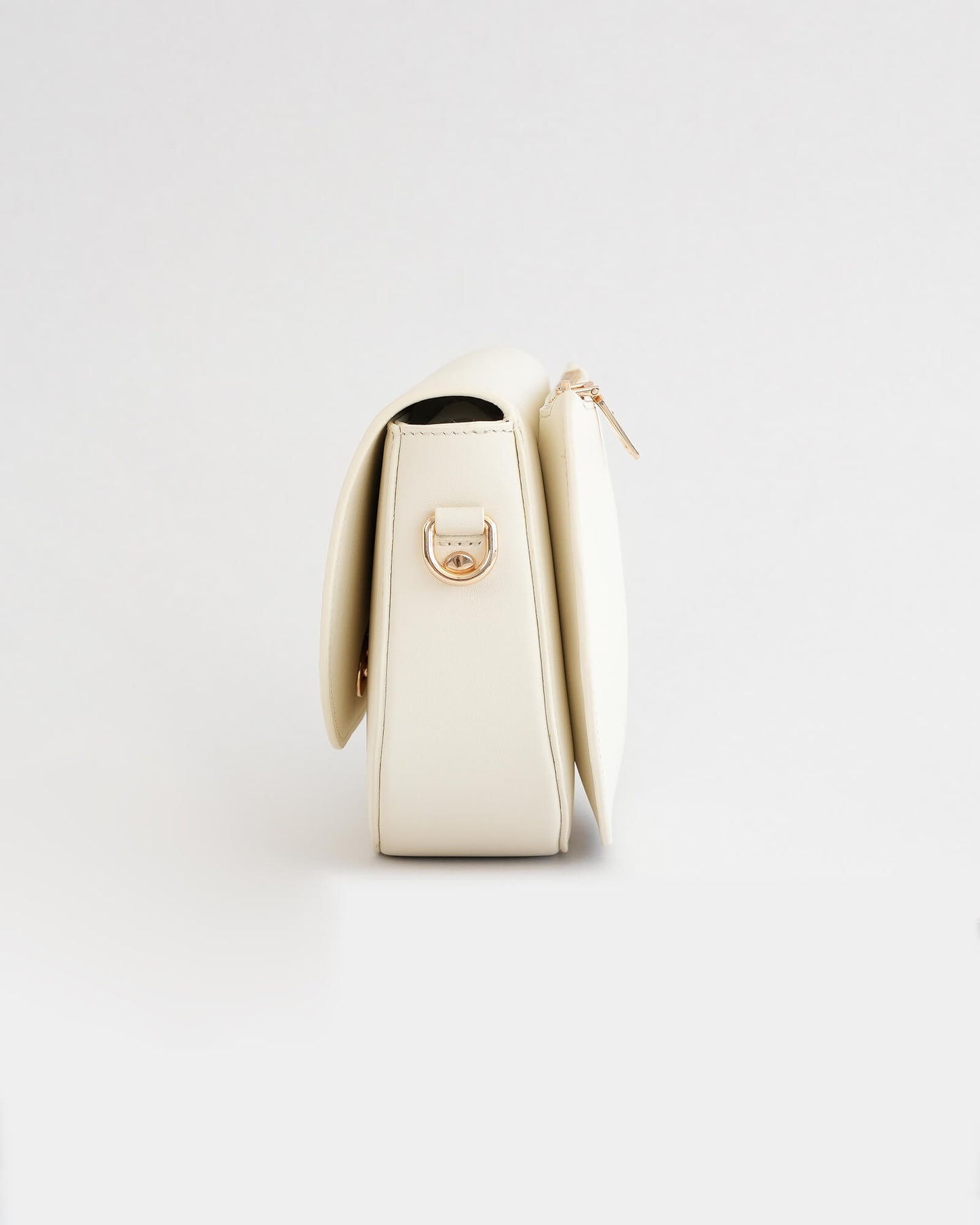 Compact yet considered, this medium-sized leather sling bag is designed to carry daily essentials with ease. The curved flap closes securely with refined gold hardware.